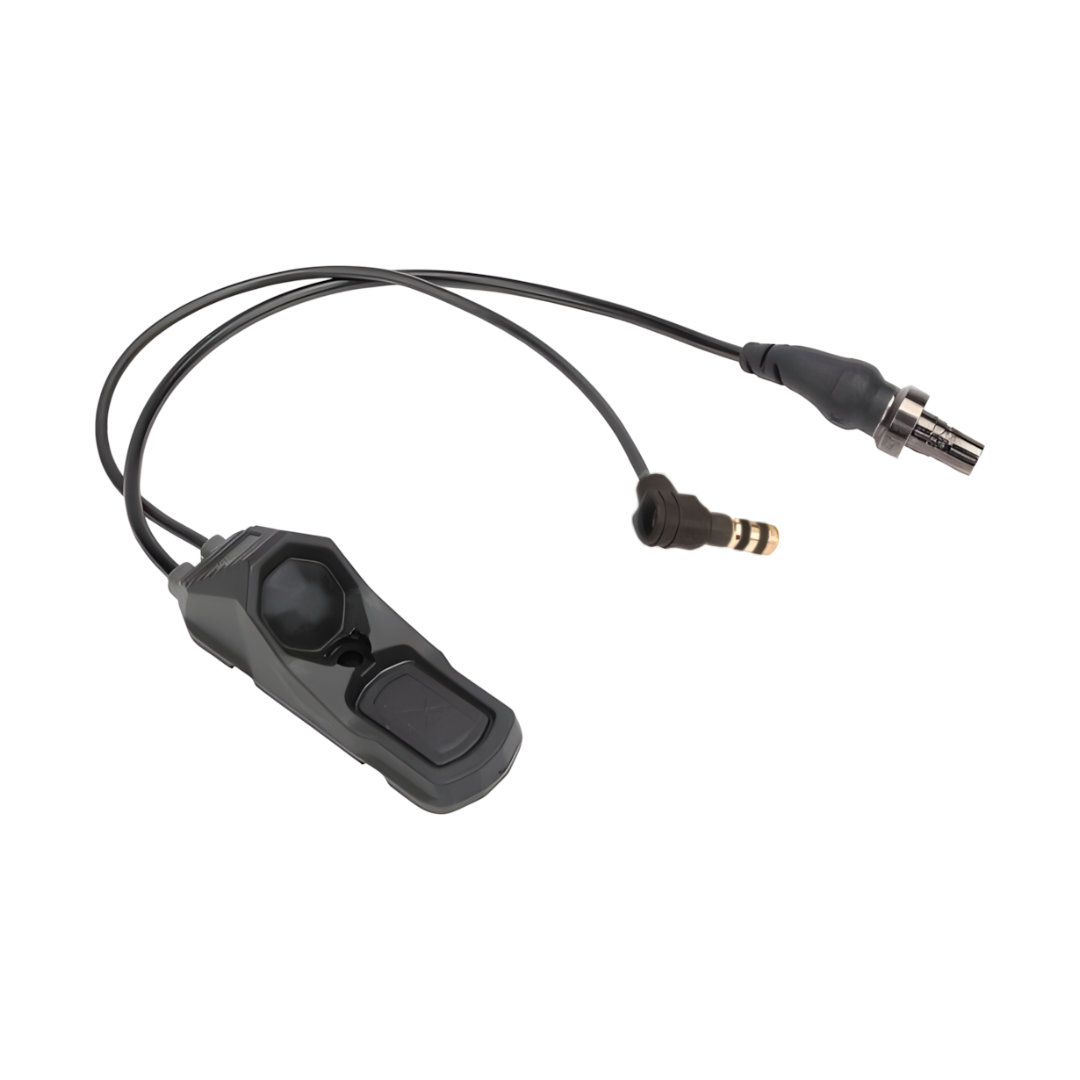 La différenciation tactile marquée entre les deux boutons réduit les risques d’erreur en condition de stress ou de faible luminosité. Le boîtier se monte directement sur un rail M1913 Picatinny et est livré avec un câble standard de 7 pouces (17,8 cm). Un kit de fixation M-LOK est disponible en option pour les plateformes compatibles.
