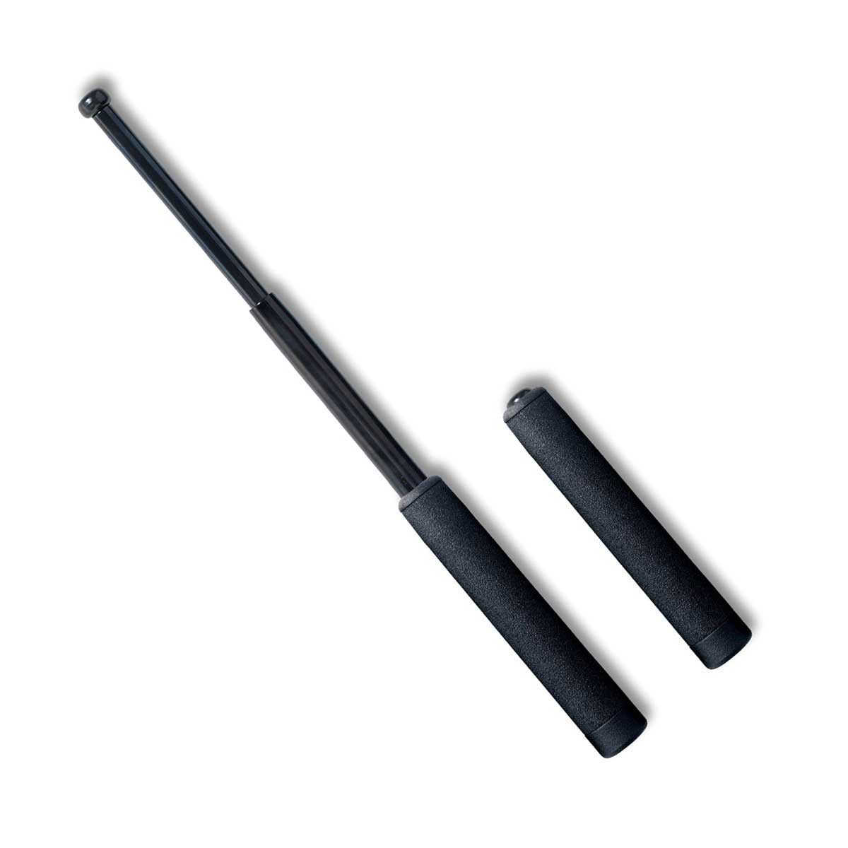 Bâton de défense et de protection télescopique. L'aluminium permet de réduire le poids du bâton de 45% tout en conservant 98% de la puissance de frappe. L'allègement du poids permet d'augmenter sa vitesse de frappe et rends son transport plus confortable.