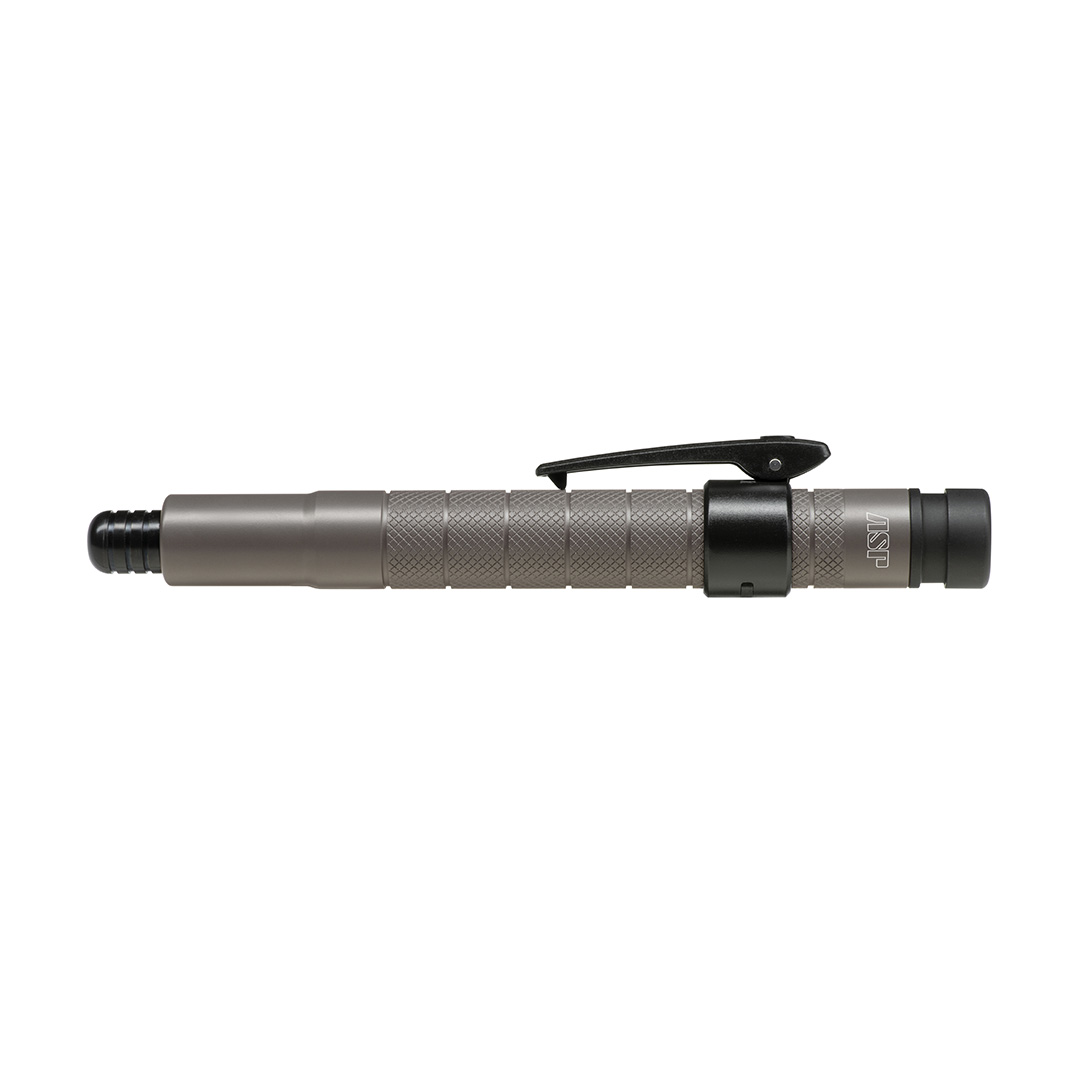 Le bâton s'étend jusqu'à 40 cm et se rétracte jusqu'à 20 cm après avoir été libéré par une simple pression sur le capuchon. Il a la forme, l'ajustement et le potentiel de frappe d'un bâton de service, mais avec un diamètre réduit et un profil discret qui le rendent facilement dissimulable à l'intérieur d'une ceinture ou sur un ceinturon.
