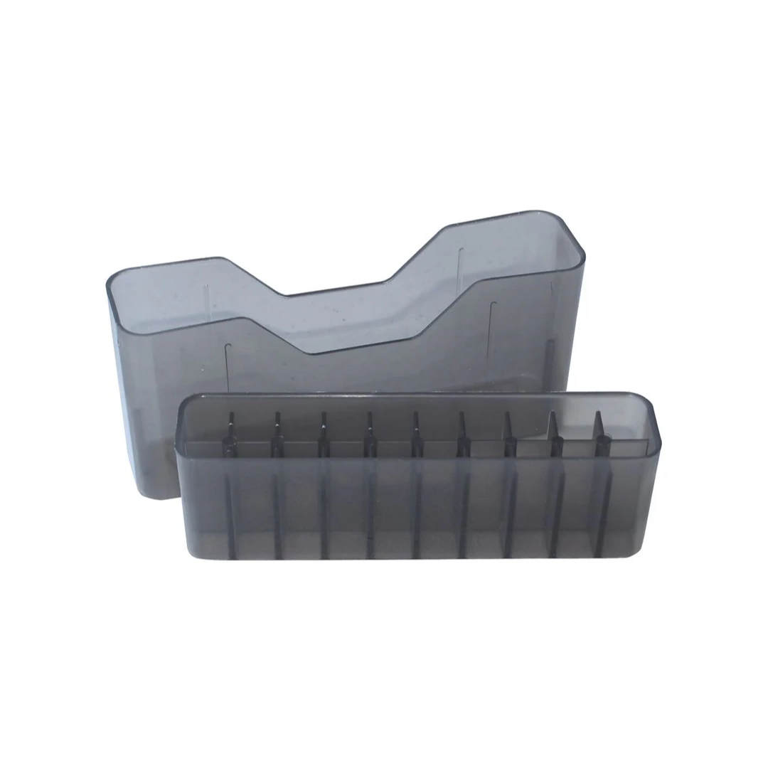 Fabriquée en polypropylène haute résistance, elle ne se déforme pas, ne se fissure pas et conserve ses propriétés mécaniques dans le temps. Les cartouches sont positionnées ogive vers le haut. Le couvercle Slip-Top protège efficacement le contenu tout en permettant un accès rapide.