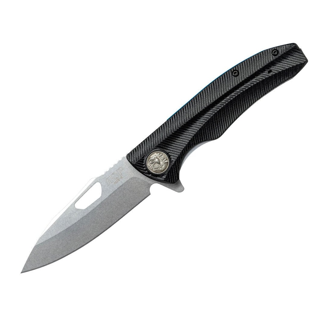 - Avec sa conception d'ouverture “flipper”, il est préférable de porter le PDK plié avec la lame tournée vers l'arrière et la pointe pointée vers le haut.