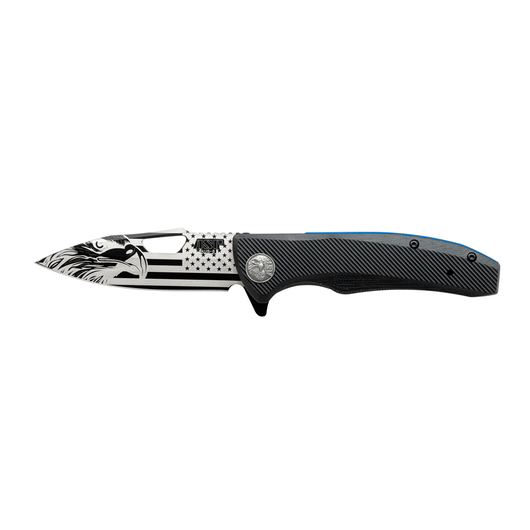 Le couteau de police PDK (Police Duty Knife) est un couteau pratique, résistant et fiable, spécialement conçu pour une utilisation quotidienne par les forces de l'ordre. C'est un outil d'excellente qualité pour tous les policiers. Le PDK possède une lame "flipper" de 3,5 " (8,89 cm) à pointe tombante et une ouverture assistée rapide. La lame est fabriquée dans un acier inoxydable AUS-8 très résistant à la corrosion et facile à entretenir. Un système de verrouillage permet de libérer et de fermer le couteau facilement et en toute sécurité. La texture du grip en G-10 de haute qualité offre une prise en main sûre, et le Shark Fin™ jimping pour le pouce rajoute du contrôle lors de l'utilisation. La fixation du clip réversible sans vis (pas de dévissage) évite de perdre celui-ci à force d'utilisation.