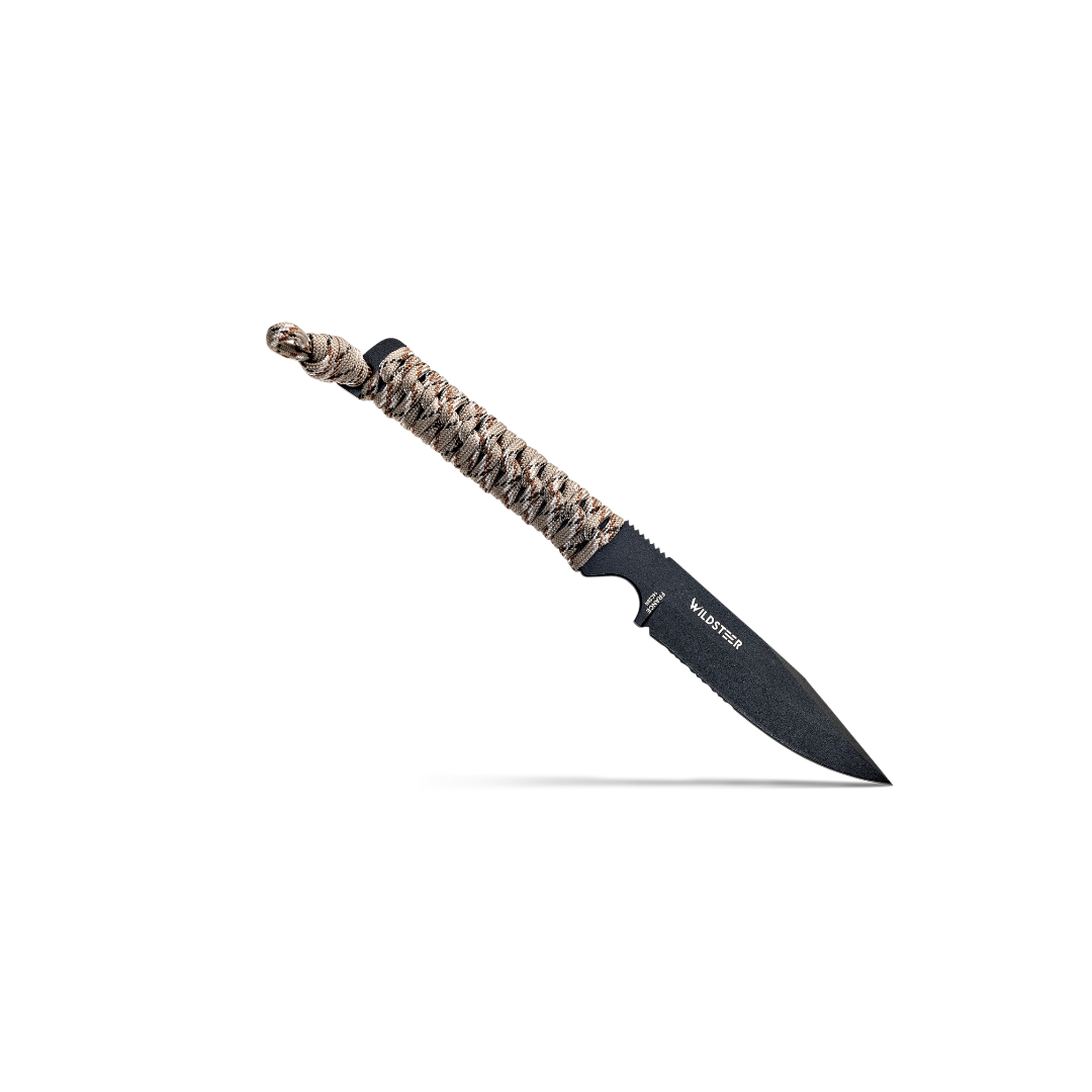 Le couteau tactique WILD TECH 4 en version lame noire avec serration a été développé en collaboration avec la Direction Centrale de la Police Judiciaire (DCPJ) et le RAID pour répondre aux besoins opérationnels des forces engagées sur le terrain. Cette déclinaison renforce encore sa polyvalence grâce à une denture partielle, particulièrement efficace pour la coupe de sangles, cordages et matériaux résistants.