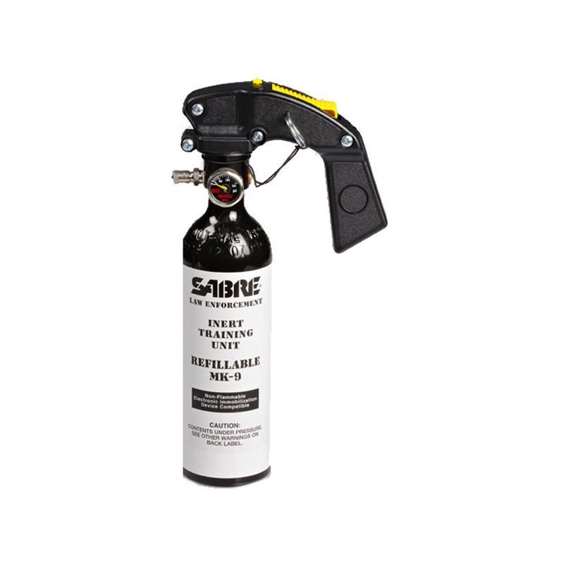L'unité de jet d'entraînement inerte rechargeable MK-9 de Sabre est un moyen sûr et efficace de s'entraîner aux situations à haut risque. La cartouche rechargeable offre le même jet puissant de 8-10 m que son homologue actif. Avec l'unité Inert MK-9, les utilisateurs peuvent s'habituer au poids et à la sensation de la gâchette pour s'entraîner à viser et à déployer le spray avec précision. Le bidon MK-9 est équipé d'un manomètre qui permet aux stagiaires de voir exactement la quantité de solution déployée à chaque pression sur la gâchette.