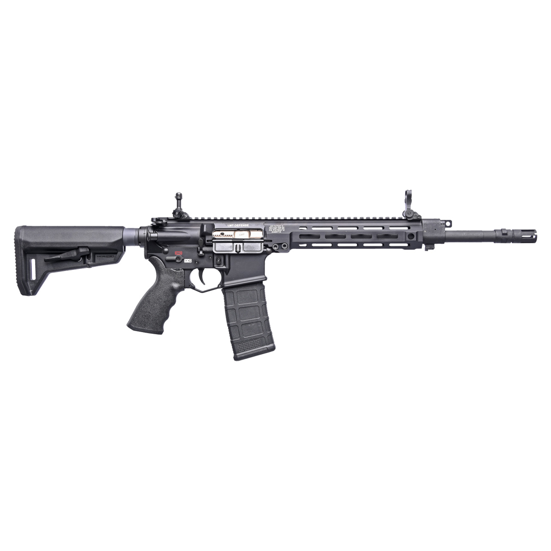 Ce système d'arme est livré avec des viseurs relevables, un harnais Vickers à 2 points, 3 couvercles de rail MLOK, un chargeur PMAG® de 30 cartouches et un manuel d'utilisation.