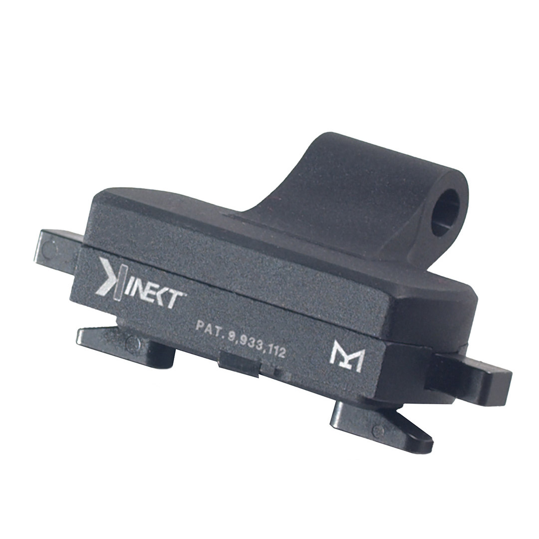 Grâce au système de fixation rapide Kinect, le support s’installe et se retire en quelques secondes, sans outil. Les cales à ressort se verrouillent automatiquement dans les logements M-LOK, évitant les manipulations fastidieuses et réduisant le risque de sur-serrage. Cette conception permet de déplacer rapidement la lampe d’une plateforme à une autre en fonction des besoins.