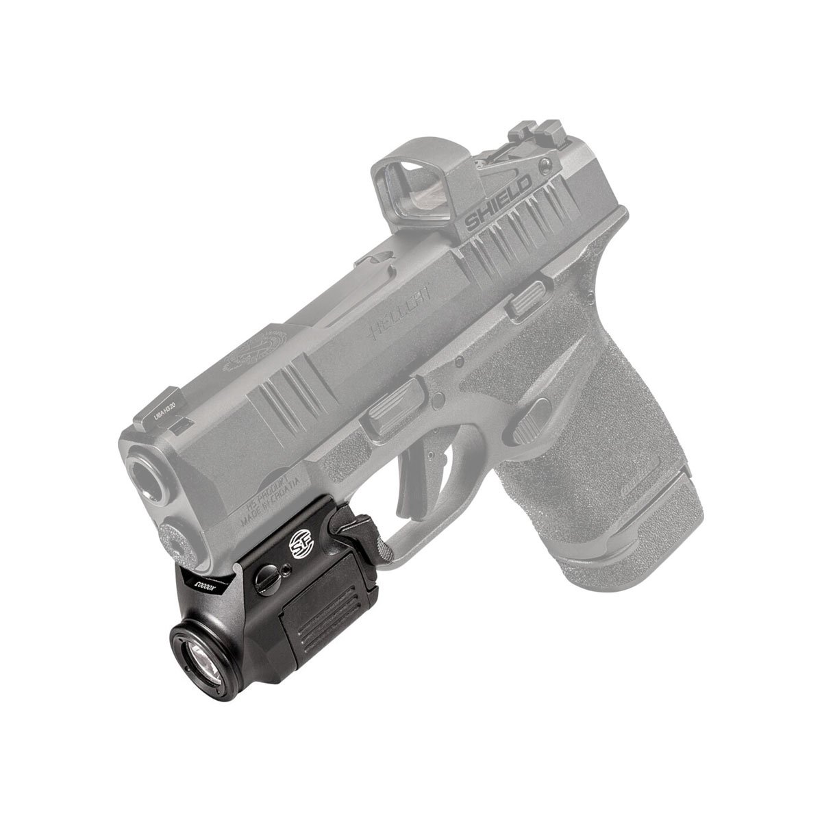 La première famille de lampe micro-compacte de qualité professionnelle au monde et conçu pour le port dissimulé. Extrêmement compacte et pratiquement indestructible, elle délivre une lumière blanche et intense de 350 lumens pour identifier positivement toute menace. Elle est également rechargeable, grâce à une batterie lithium-polymère unique que vous pouvez changer à la volée. La commutation intuitive et ambidextre permet de contrôler instantanément d'un seul doigt l'activation momentanée ou constante pour vous aider à maîtriser la situation. Modèle spécifiquement conçu pour s'adapter parfaitement au Springfield Armory Hellcat.