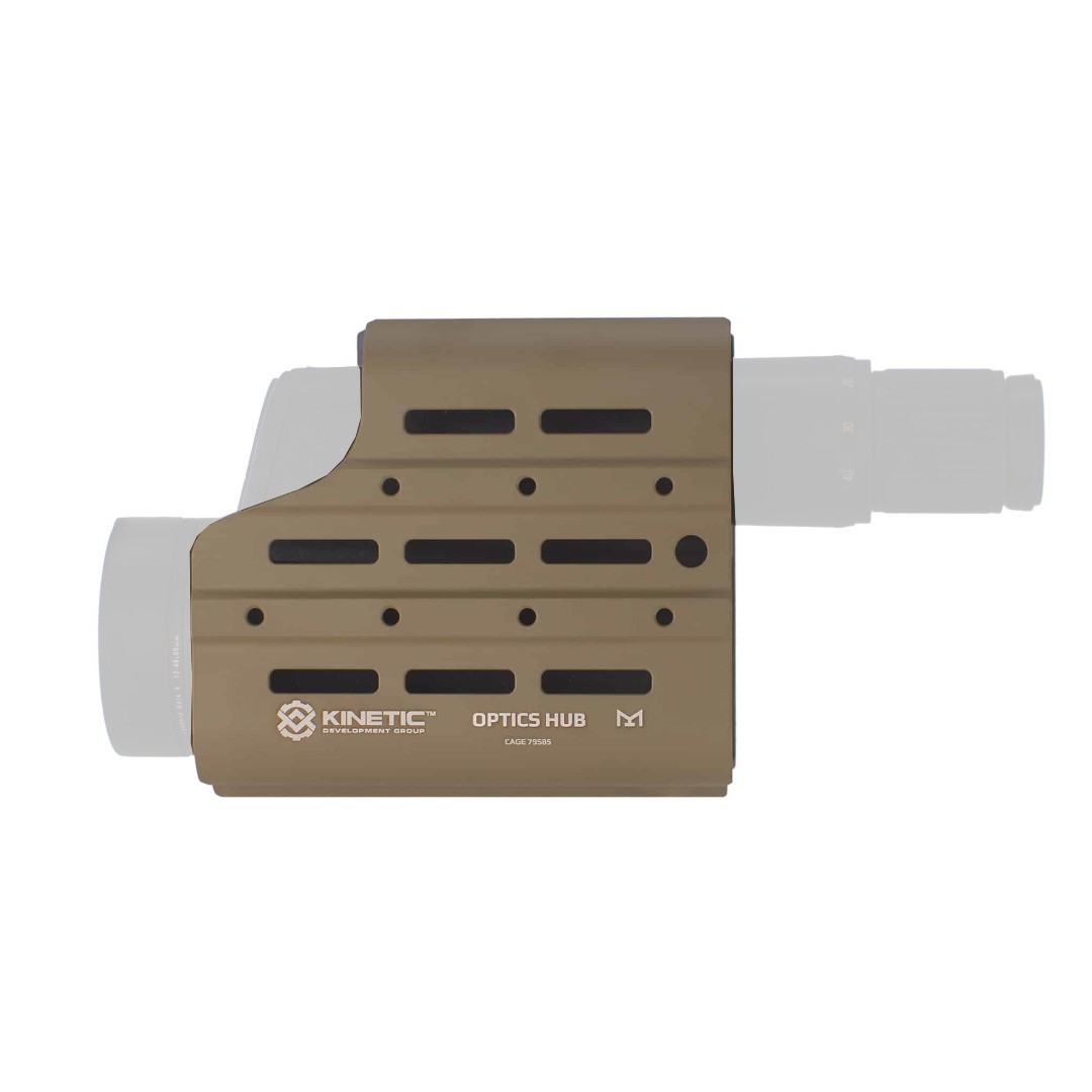 Fabriqué en aluminium 6061-T6 de qualité aéronautique et recouvert d’un revêtement Cerakote NIR en teinte FDE, l’Optics HUB allie légèreté, robustesse et discrétion. Le traitement anti-réflexion infrarouge le rend particulièrement adapté aux environnements où la vision nocturne est utilisée.