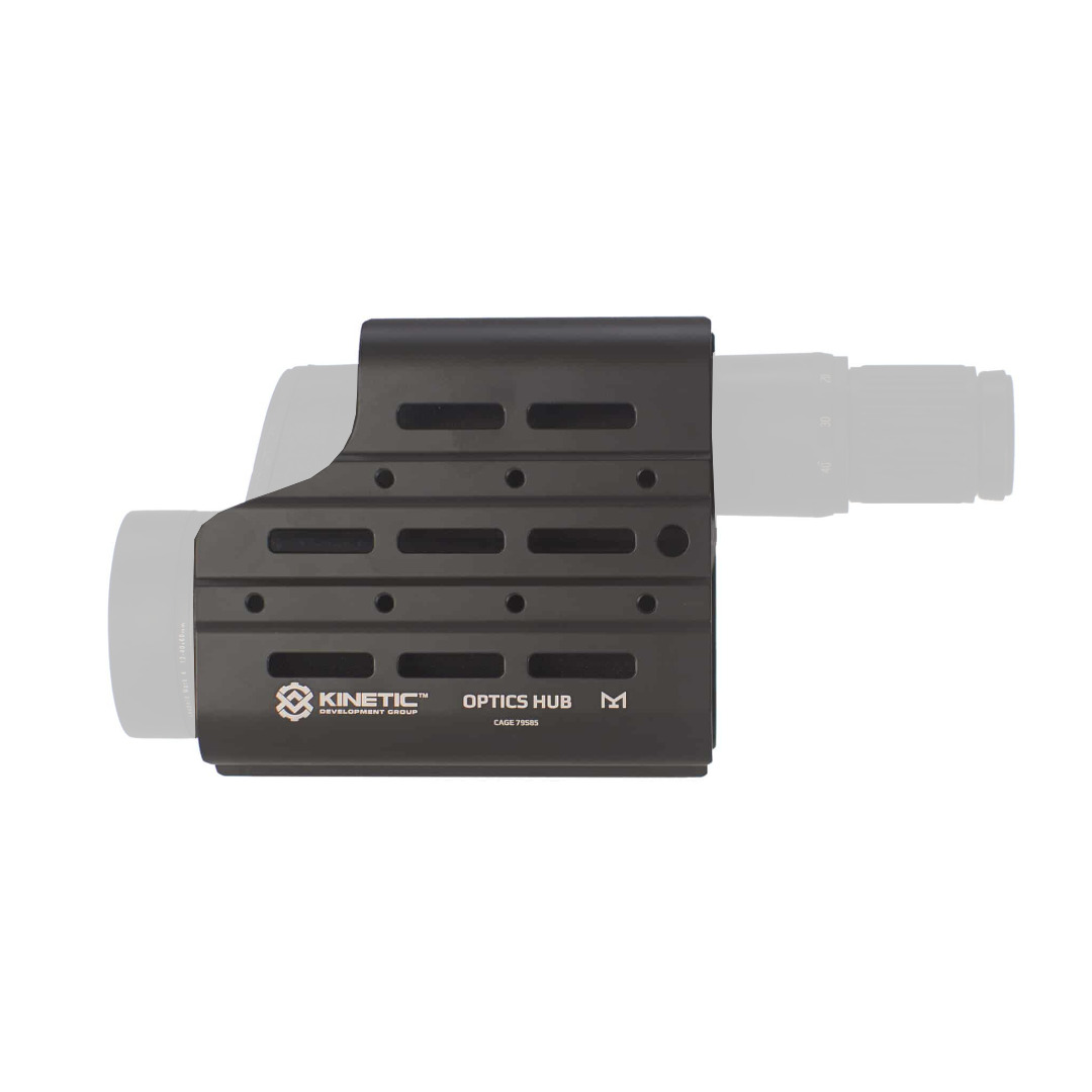 Grâce à sa conception hautement modulaire, l’Optics HUB permet de fixer directement autour de l’axe optique des équipements essentiels tels que télémètres laser, mini points rouges, désignateurs laser, cartes balistiques, stations météo Kestrel ou accessoires de mesure. Cette configuration favorise une acquisition rapide des données sans quitter le champ de vision.