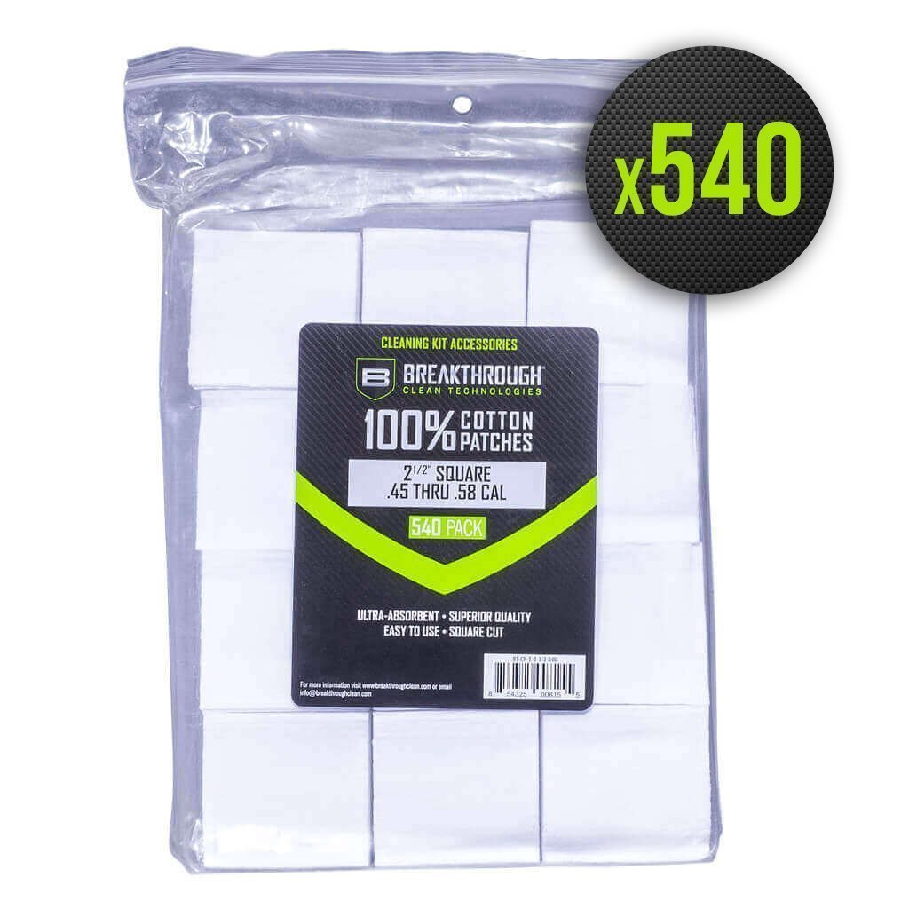 540 patchs de nettoyage en coton calibrés pour du .45 au .58 cal.