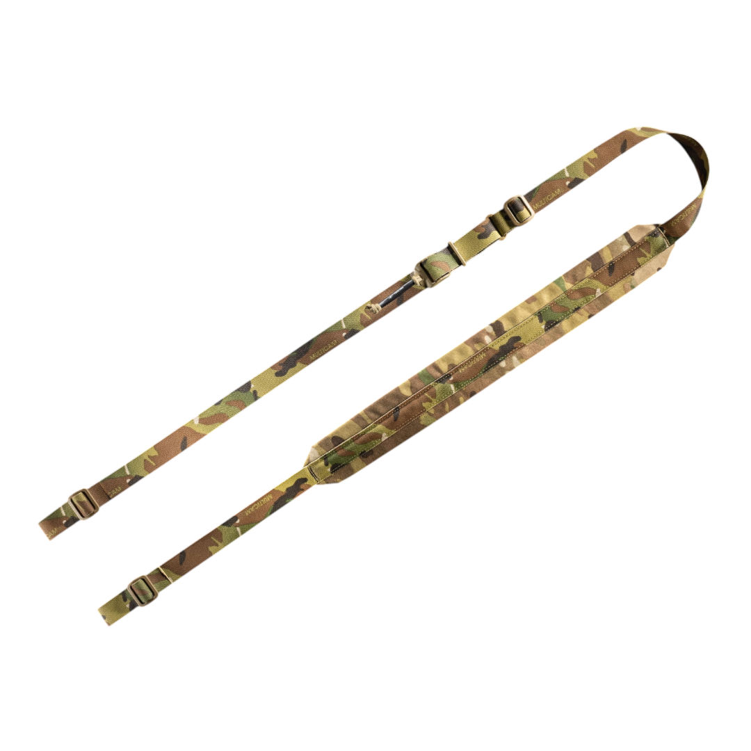 Fabriquée à partir d’une sangle nylon MIL-SPEC de 1 pouce conforme à la spécification A-A-55301, cette sangle assure robustesse et fiabilité tout en conservant une conception simple et épurée. L’ajustement de la longueur et la gestion de la tension de l’arme sont assurés par une boucle ladderloc dédiée, permettant une extension fluide et un verrouillage précis selon la position de port ou d’engagement.