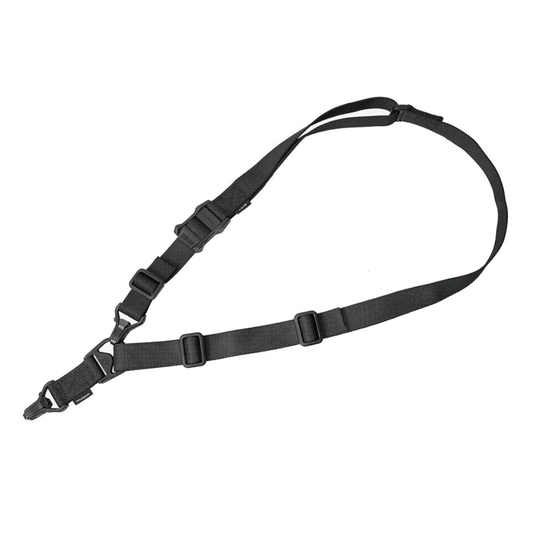 Conçue avec les retours d’expérience des instructeurs Magpul, la sangle MS3® Gen 2 est une sangle multimission qui a été développée pour être utilisée sur de nombreuses armes et de différentes manières. Elle permet de s’adapter aux missions et environnements tactiques changeants. D’une largeur de 3.2 cm (1.25’’), la sangle MS3® Gen2 est dotée à chaque extrémité d’un clip en acier à accroche rapide breveté (appelé « Paraclip™ »). Cela permet de s’accrocher ou de se décrocher rapidement des anneaux présents sur les différents fusils d’assaut. Aussi, cela permet de transformer la sangle rapidement d’un modèle à 2 points d’accroche sur l’arme à un modèle à un point d’accroche sur l’arme type « goutte d’eau ». Ces crochets comportent un système de verrouillage « Cross-Bolt Lock Bar » pour éviter tout décrochage non souhaité par l’utilisateur. Cette sangle est également réglable rapidement à une main grâce à son système coulissant élargi qui assure une bonne préhension.