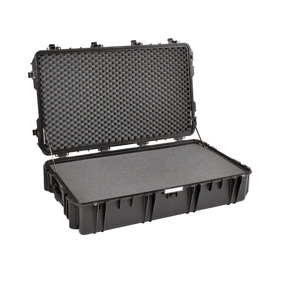 Cette longue valise, extrêmement résistante et étanche, permet le rangement et le transport de carabine ou de matériel fragile. Elle est garnie de blocs de mousse prédécoupée, le façonnage s’effectue manuellement par arrachage des bâtonnets de mousse. Son format convient idéalement aux fusils et armes à feu.